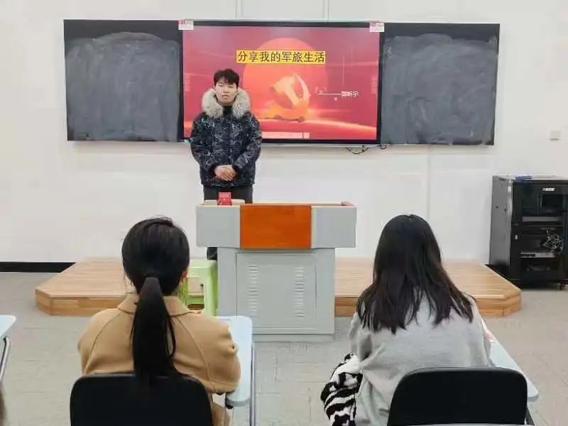 本次活動邀請到了財經旅游學院22級高速鐵路客運服務專業退伍士兵郭昕宇同學為電商系的師生們動情講述了專屬于他的軍旅生活: