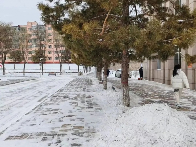 漫天飛舞無窮盡,銀裝素裹扮校園。在這漫天飛舞的雪花中,校園被銀裝素裹,展現出一片美麗的冬日雪景。為保障師生通行安全,優化校園環境,電子商務系第一時間響應號召,全體教職工及電商學子積極參與清雪工作。