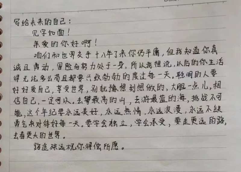 在活動中,同學們坦誠的表達了內心最真實的想法和感受。語言是強大的,有些話我們可能并不習慣用語言來表達,于是,文字在此刻爆發出了強烈的光芒。同學們將自己那從未展現于人前的小脾氣、對自己深夜輾轉反側的深思與懊悔、心中那小小的從未宣之于口的愿望、對自己未來的展望,用真摯的文字表達最真誠的自己。