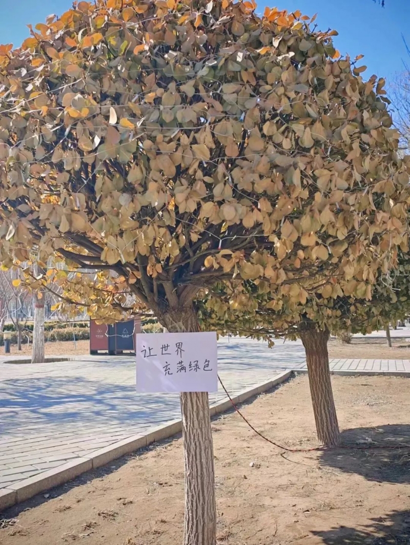 “人從眾團團聚園,木林森茂茂密密”、“造林及造福,栽樹即栽福”、“播撒一片綠色讓世界更美,愛護萬千樹木讓你我同行”……一句句滿載祝福的語言帶著蓬勃的生機被懸掛在初春嫩綠的枝丫上,時刻提醒著同學們要愛護環境、保護樹木,做環境的保護者。
