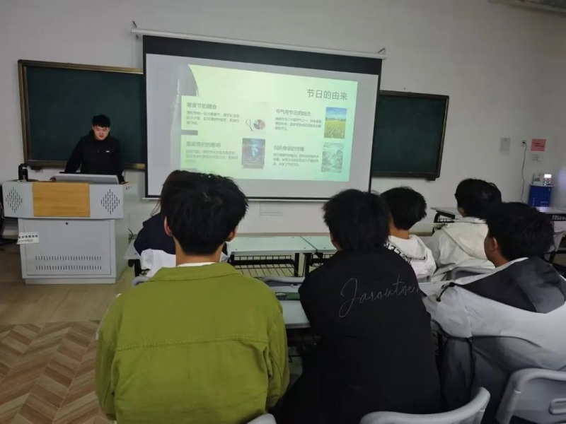 活動中,紀錄片以生動影像梳理了清明節兩千多年歷史,從寒食禁火、踏青插柳,到祭祖掃墓、家國情懷,同學們直觀感受到其承載的文化記憶。隨后,部門負責人解讀清明節的文化符號與現代意義。青團寓意“團圓安康”;柳枝象征“生命不息”;風箏寄托“除災納福”。這些習俗蘊藏著先人對自然、生命與倫理的思考。