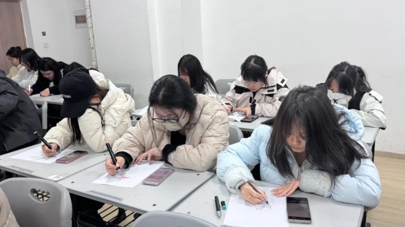 活動現場,同學們手持畫筆,自由創作,用抽象線條表達內心的奇思妙想,將許多主題融入作品,賦予涂鴉更深層次的意義。活動現場歡聲笑語不斷,畫筆與畫紙的摩擦聲交織成動人的旋律。同學們或用明快亮麗的色彩訴說青春的心聲,或用流暢靈動的線條傳遞純粹的歡樂。