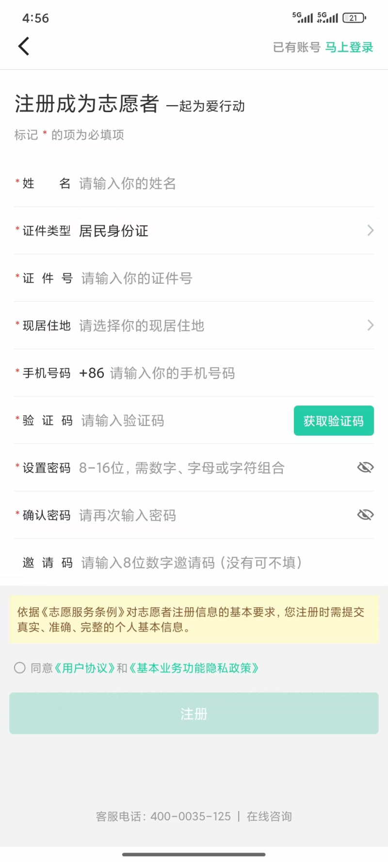 *注:注冊志愿者須為志愿者本人實名注冊,請志愿者務必保護好志愿者本人賬號信息。