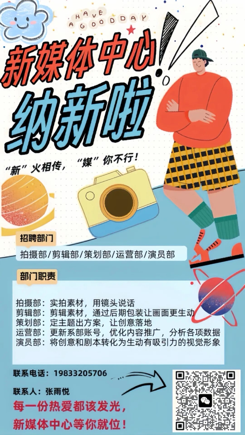 為進一步壯大新媒體中心隊伍,提升校園宣傳影響力,更好地傳遞校園聲音、講好校園故事,現(xiàn)面向張職院電子商務系全體新生開啟納新工作,誠邀熱愛新媒體、有想法、敢創(chuàng)新的你加入!