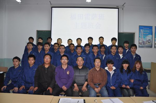10月20日19:00—20:00,福田雷薩班30名學生身著福田公司統一配發的工裝在汽車工程系福田雷薩委培大專班專用教室舉辦了首次班會。