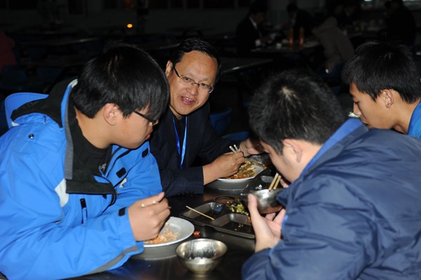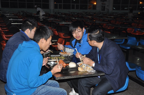 10月26日晚,評估專家組成員和學院領導一起到學院食堂與學生共進晚餐。專家們融到就餐學生中間邊吃飯邊交談,既考察了學院的飲食環境條件、飯菜質量和后勤保障工作情況,又營造了親切和諧的就餐氛圍。