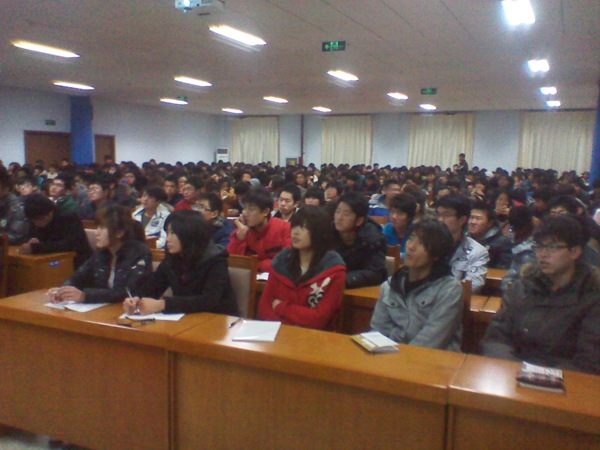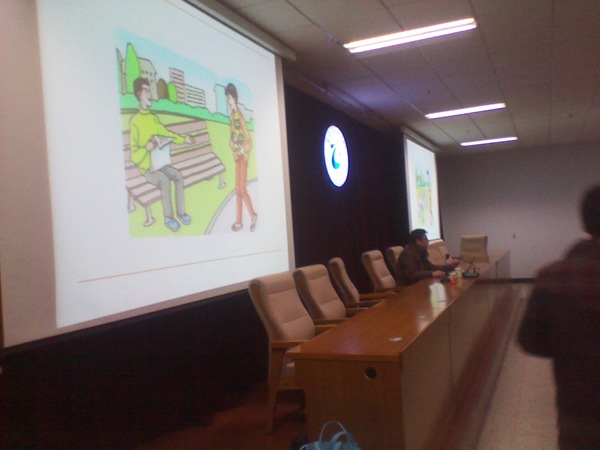 本次活動分為兩個部分。在學生食堂門口,工作人員發放了宣傳小冊子,印有宣傳信息的小禮品,擺放了二十多塊宣傳展板供同學們學習觀看。同時張家口電視臺的健康欄目主持人作為形象大使給同學們做了講解并合影。在307報告廳,來自市衛生局的專家給300多名學生做了預防艾滋病的專題講座。