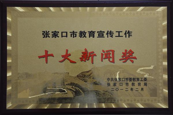 3月30日上午,在市委教育工委、市教育局召開的“表彰2011年度教育宣傳工作先進”的大會上,我院榮獲張家口市2011年度“教育十大新聞獎”。