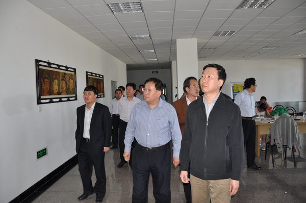 演出結束后,黨委書記胡煒、院長王立秋與兄弟院校領導一起參觀了河北北方學院圖書館。
