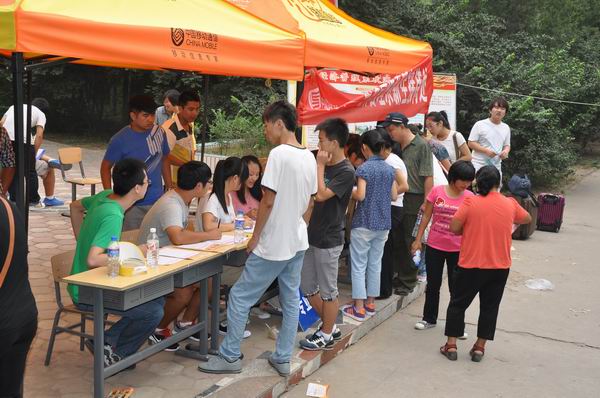 9月1日,我院新生開始報到。兩個大型的紅色拱門分別豎立在學院南北校門口,兩個紅色氫氣球高高懸掛在辦公樓前的廣場上,校園內道路兩旁插滿了彩旗,校園內到處懸掛著歡迎新同學的標語。新生接待處,工作人員和新生及其家長忙著辦理入學手續,整個場面歡樂、祥和。