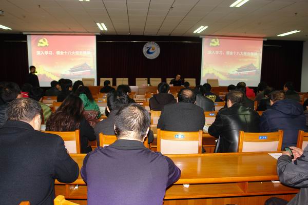 會上,社科部主任白義對十八大報告的重點內容進行了解讀,分別從九個關注點,十個關鍵詞,八個亮點全面闡述了十八大精神要領。