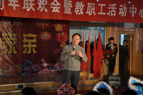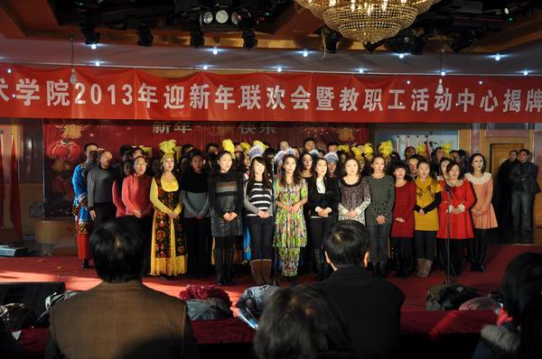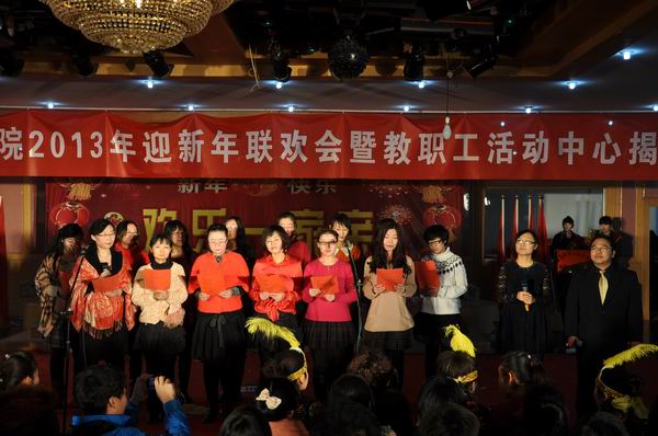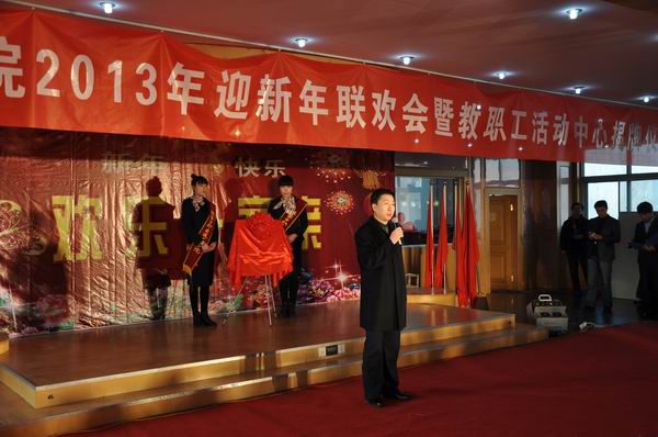 正值新年來臨之際,12月26日下午,學院在教職工活動中心舉行了2013新年聯歡會暨教職工活動中心揭牌儀式。黨委書記胡煒、院長王立秋為教職工活動中心揭牌,黨委副書記張樹敏,副院長陳懷勇、許建平,黨委副書記、紀委書記史慧武出席,各部門代表和學生代表、新疆班學員共計300多人參加了新年聯歡會。