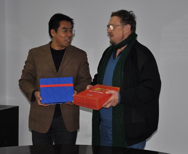 奧古斯蒂娜高級(jí)文理中學(xué)校長(zhǎng)Eckhard Immig(埃克哈特· 易米科)與王立秋互贈(zèng)了紀(jì)念品。
