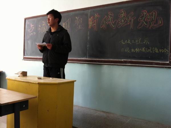對于此次班會,各班班主任、班委和同學們都精心做了準備。并且每個班以不同的形式對這次主題班會進行了最好的詮釋。11級機電一班由許朋同學主持,圍繞主題提出一系列的問題,同學們積極舉手發言,在問題中思考自己的行為并且認識到“勿以善小而不為,勿以惡小而為之”。12級機制班是以模擬情景的方式展開的主題班會,在他們自編自導自演的過程中,發現自身及社會上禮儀、行為方面存在的問題,思考如何解決,從行動上落實。貴在實踐,文明就寢、文明就餐、文明用語、文明交往、文明聚會、文明上網……看上去都是日常學習、生活的小事,但真正做起來并不容易。我們每位同學從自身做起,少說漂亮話,多做實在事,積極參加各種修身養性的活動,做到舉止得體、言行文明、品德高尚、尊敬師長、尊重他人,以自己的實際行為,告別各種不良行為,堅持不懈地提升自身的道德素質,做一個文明的大學生。