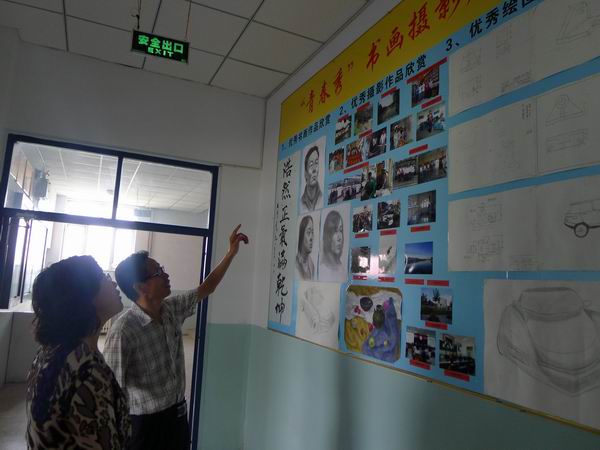 學院領導一行觀看了該系學生的書畫作品,本次展品共分“優秀書畫作品欣賞”、“優秀攝影作品欣賞”和“優秀繪圖作品欣賞”三大板塊。集中展示了汽車工程系學生在書法、繪畫和專業汽車制圖方面的特長,同時也展示了該系的特色學生活動圖片,如“校友會選拔學生風采”、“雅安地震獻血”、“拔河籃球大賽”、 “屈家莊孤兒院獻愛心”、 “見義勇為 彰顯我院學生干部風采”、“拾金不昧”、和“標桿宿舍”等,學院領導對此給予了充分肯定。