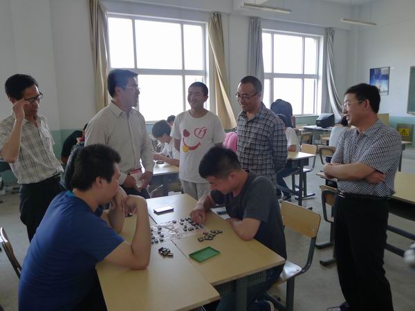 隨后,在系領導的陪同下,學院領導們又深入“青春秀之棋藝大賽”活動現場,大賽分為五子棋、象棋、圍棋、軍旗、跳棋等項目。王院長一行饒有興趣的觀看了比賽;學工處馮處長還和同學們進行了棋藝交流。