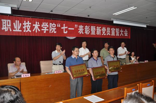 黨委副書記、院長王立秋宣讀了學院黨委《關于表彰先進黨支部、優秀黨務工作者和優秀共產黨員的決定》。大會為四個先進黨支部頒發了獎牌。