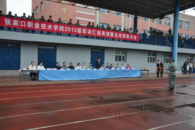 9 月18日上午9時(shí),伴隨著莊嚴(yán)雄壯的國(guó)歌聲,我院2013級(jí)新生軍訓(xùn)匯報(bào)表演暨總結(jié)表彰大會(huì)在體育場(chǎng)隆重舉行。黨委書記胡煒、院長(zhǎng)王立秋、紀(jì)委書記史慧武出席大會(huì),各系書記、團(tuán)總支書記、新生輔導(dǎo)員及學(xué)院軍訓(xùn)領(lǐng)導(dǎo)小組全體成員參加了大會(huì),張家口軍分區(qū)軍訓(xùn)辦參謀翟民偉應(yīng)邀到會(huì)。大會(huì)由史慧武主持。