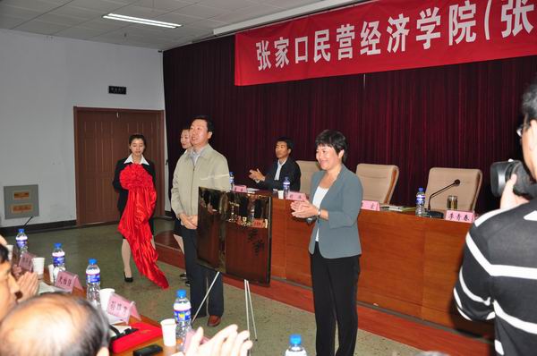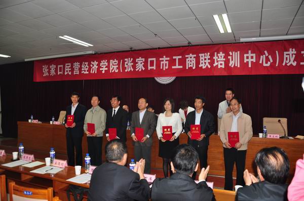 9月29日,張家口民營經濟學院(市工商聯培訓中心)成立大會在我院舉行。省工商聯副主席孫增泰,市委常委、政法委書記、統戰部長李青春,市人大副主任、工商聯主席武鳳英,市政府副市長李宏,市教育局調研員張殿忠,我院黨委書記胡煒、院長王立秋、副院長宋德明等領導出席。成立大會上,張家口民營經濟學院(市工商聯培訓中心)聘請市領導鄭麗榮、李青春、武鳳英為名譽院長,武鳳英為教務委員會主任,我院院長王立秋為院長。民營經濟學院由我院和市工商聯聯合組建,為工商聯會員搭建了學習、交流和溝通平臺。學院成立后,將聘請國內外知名教授、學者、企業家等,有計劃、有針對性地為民營企業中高管理層、企業員工和工商聯系統干部開展培訓。
