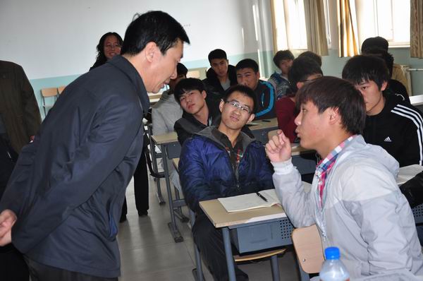 學院領導和相關部門負責人在教室聽了擔任該系《高等數學》課程教學的康麗坤老師的講授。課間,學院領導與教師、學生進行面對面交流。胡書記十分關心師生的學習、生活情況,詳細詢問同學們吃的、住的怎么樣,老師午休怎么樣,在生活和學習方面有什么要求。鼓勵同學們珍惜現在,愛惜身體,抓好學習,爭當高職優秀學子。王院長在交流中希望同學們勤奮學習,苦練實踐,掌握過硬本領,就業前景廣闊,實現人生理想,更好服務社會。