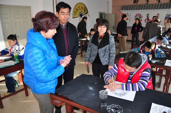 在市特殊教育學校蘇校長、楊書記等校領導的陪同下,胡書記一行參觀了該校餐廳、學生宿舍、手工藝和中醫保健實訓中心、音樂室、美術室、刺繡室等。