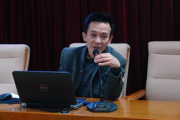 劉斌代表《基于校企合作路徑的高職院校校園文化建設》課題組作開題陳述