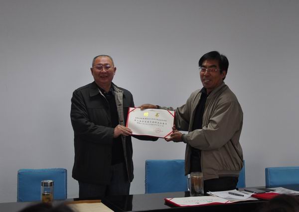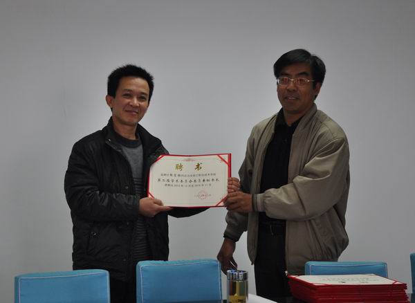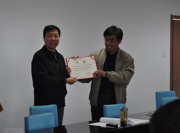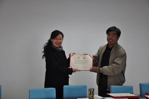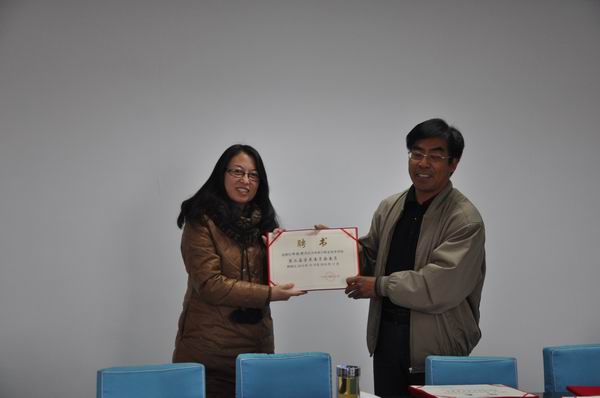 胡書記代表黨委向院長王立秋頒發了學術委員會主任委員聘書;王院長向副主任委員、秘書長及新任學術委員們一一頒發了聘書。