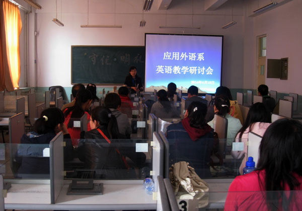 為了適應高職院校新學情,進行英語教學改革,促進我院的公共英語教學,應用外語系于2014年4月18日下午在博學樓510召開了英語教學研討會。應用外語系當天所有無課的教師參加了此次研討會。