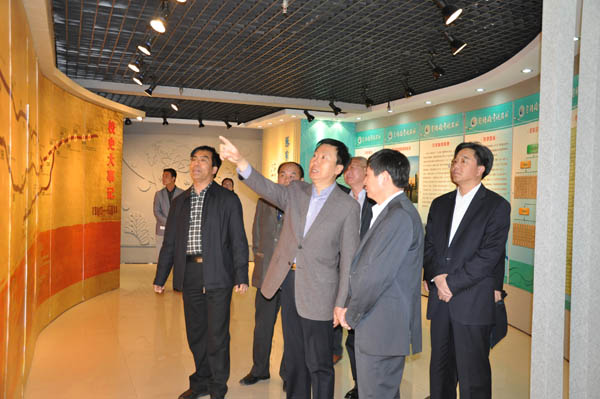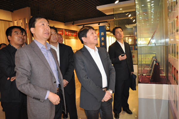 授課輔導前,市委書記邢國輝一行在學院領導胡煒、王立秋、楊瑞輝、宋德明等陪同下參觀了學院校史展廳。