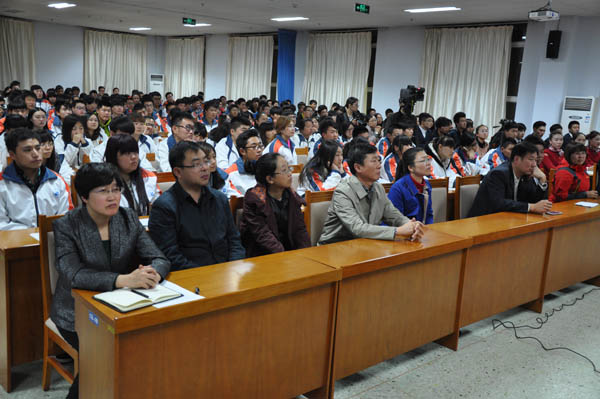 報告會由紀委書記史慧武主持,學院黨委書記胡煒首先代表學院黨委和全體師生員工對巡講團的到來表示熱烈歡迎,對給予這次活動大力支持的省、市文明辦表示衷心的感謝,對崇尚志愿服務的全體青年朋友們致以了崇高的敬意!他指出,為了培育和踐行社會主義核心價值觀,在全省范圍內開展“善行河北”主題道德實踐活動,進一步在全社會弘揚志愿服務精神,河北省文明辦等單位開展了志愿者先進事跡巡講活動,志愿者們以服務他人、奉獻社會為宗旨,秉承“奉獻、友愛、互助、進步”的志愿者精神,身體力行唱響善、弘揚善,踐行善,在燕趙大地上形成了善意濃濃、善心涌動、善行如潮、善曲高奏、善果累累的道德氛圍,他們是弘揚志愿者精神的杰出代表,是志愿者服務的典范,為全社會弘揚正能量,譜寫了最壯美的青春篇章。