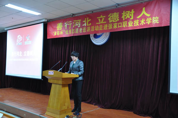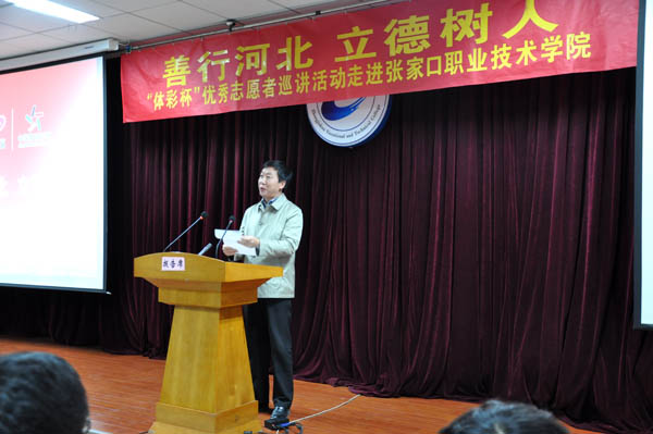 紀委書記史慧武在主持報告會時指出,近年來我院青年志愿者立足校園,走進社區,服務弱勢群體,受得了廣泛贊譽,我院將以此次巡講報告會為契機, 學習好、宣傳好志愿者們的先進事跡,進一步健全志愿者服務機制,進一步鞏固我院精神文明建設成果,為學院發展、為張家口精神文明建設、為善行河北,為強化社會主義核心價值觀教育,增添動人的音符、和諧的樂章、文明的色彩,為實現中華民族偉大復興的中國夢不懈奮斗。