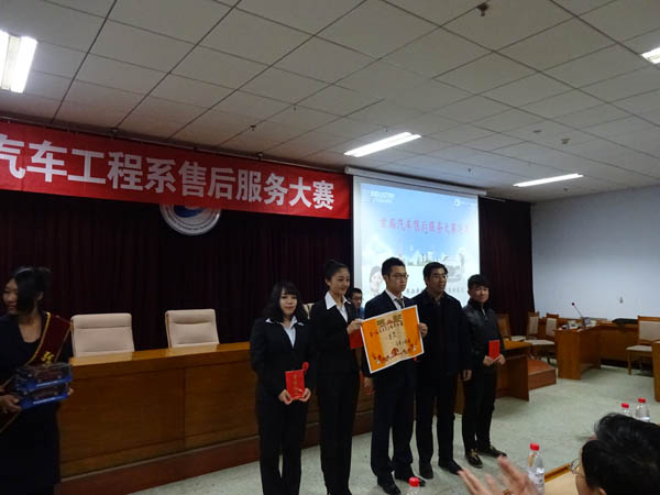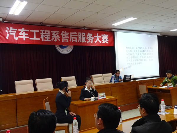本次大賽,汽車工程系有10支代表隊報名參賽,經過預賽有4支代表隊進入了決賽。決賽現場氣氛熱烈、精彩紛呈,各代表隊通過闡述服務理念,電話咨詢車輛故障、保險理賠,模擬事故維修、道路救援、客戶回訪、調解客戶糾紛等,充分展示了汽車售后服務的各工作環節,博得了同學們的陣陣掌聲。