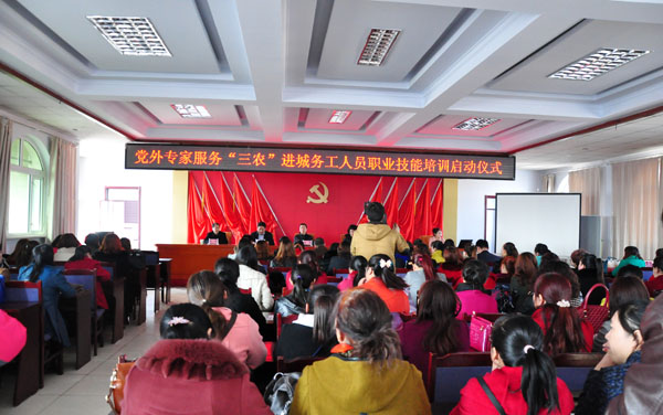 為加強進城務工人員的職業技能,提高農民工的素質和就業能力,3月25日,市委統戰部組織的黨外專家服務“三農”進城務工人員職業技能培訓啟動儀式在張北縣舉行。參加啟動儀式的有學院黨委書記胡煒,市委統戰部副部長、市社會主義學院黨組書記田潔,張北縣政府副縣長許要武,河北北方學院文學院院長、市黨外知識分子聯誼會副會長吳鳳翔,我院宣傳統戰處處長白平、信息工程系副教授謝芳。
