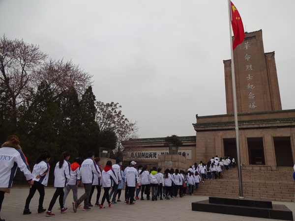 祭掃活動由應用外語系李艷娜同學主持。首先,全體默哀三分鐘,大家心懷敬意,神情肅穆,追憶先烈們為新中國英勇犧牲的英雄事跡。然后由經濟管理系閆蓓蓓同學宣讀悼念詞,并作為代表發出倡議。最后集體參觀革命英雄紀念堂,并為烈士獻花。