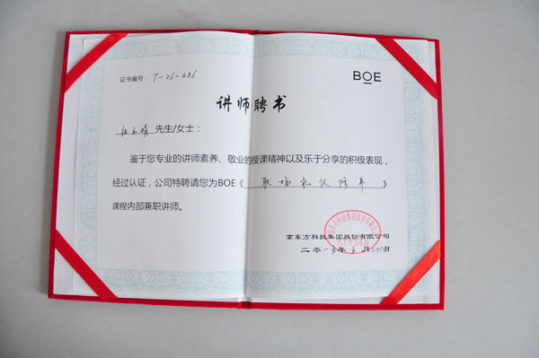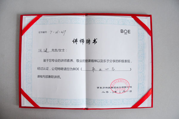 在京東方特色課程在校教師培養(yǎng)選聘會期間,招生就業(yè)處的三位同志積極參與、認(rèn)真準(zhǔn)備,全部通過了企業(yè)的認(rèn)證考核,被聘為京東方科技集團(tuán)股份有限公司(BOE)《打造高效團(tuán)隊》《職場禮儀修養(yǎng)》《職業(yè)心態(tài)》課程的認(rèn)證講師。
