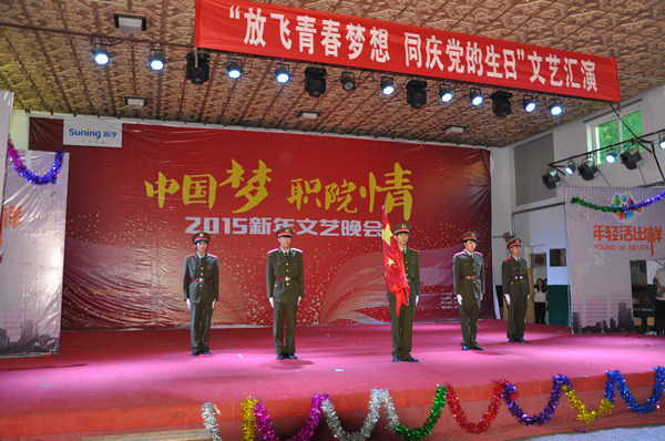 演出前,國(guó)旗班列隊(duì)奏響國(guó)歌,與會(huì)全體黨員重溫入黨誓詞。晚會(huì)通過(guò)話劇、歌曲、小品等多種形式為建黨94周年奉上了一場(chǎng)精彩的視聽(tīng)盛宴,語(yǔ)言類(lèi)節(jié)目《三句半》敘述了黨波瀾壯闊、艱苦卓絕的奮斗歷程。新改編《黃河大合唱》唱出了當(dāng)代青年學(xué)子對(duì)黨、對(duì)偉大祖國(guó)的無(wú)比熱愛(ài),表達(dá)出對(duì)中國(guó)共產(chǎn)黨成立94周年的深情祝福。電氣系兩名退伍軍人學(xué)生演唱的《當(dāng)那一天來(lái)臨》及詼諧幽默的小品《我們的未來(lái)不是夢(mèng)》,體現(xiàn)了我院學(xué)子不斷創(chuàng)新,追求卓越的精神。汽車(chē)工程系與電氣系共同表演的大合唱,以和諧、圓潤(rùn)的男女聲搭配和混為一體的配合將整場(chǎng)晚會(huì)推向了高潮,將90后的青春魅力展現(xiàn)得淋漓盡致。最后,晚會(huì)在話劇《我的未來(lái)不是夢(mèng)》中圓滿落下帷幕。