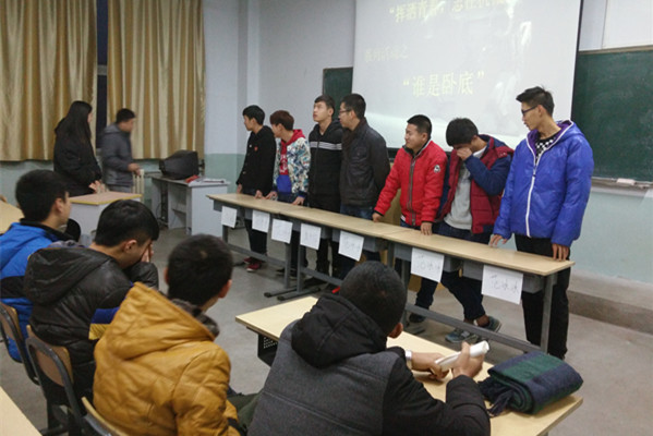 12月3日,機械工程系舉辦了“誰是臥底”趣味游戲活動。活動中,7人為一組,每組共進行三輪競猜,游戲要求每人每輪一句話描述自己拿到的詞語,不能讓臥底發現,又要給同組隊員以暗示。每輪描述完畢,投票選出臥底,得票數最多的人出局。內容設置靈活多樣,有“東京”與“首爾”、“黛玉葬花”與“貴妃醉酒”、“江南style”與“最炫民族風”等,其中一旦所描述的語句跟其他人稍許不一樣就會被指認為臥底。