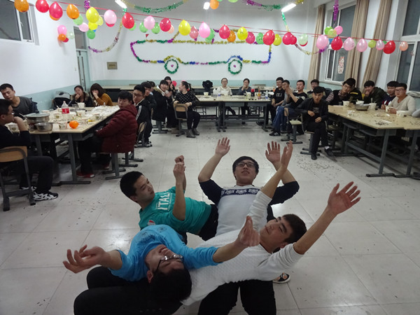 12月25日,汽車工程系在汽修樓16多媒體教室舉辦“歡度圣誕喜迎元旦”聯歡晚會。晚會內容包含“包餃子”、“猜詞語”、“團結協作”、“頭頂氣球”四個部分。