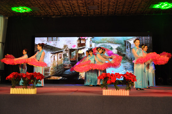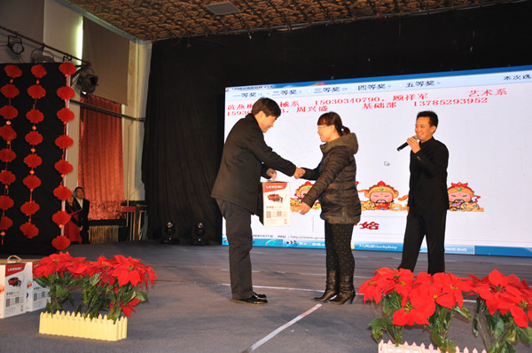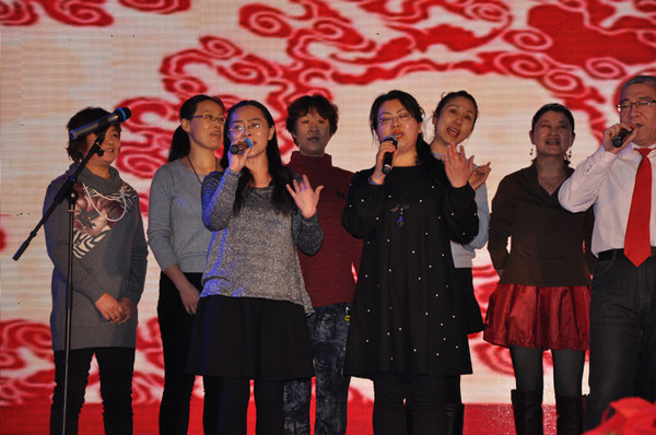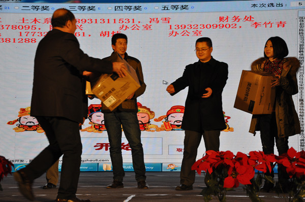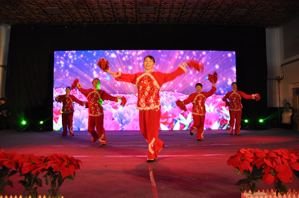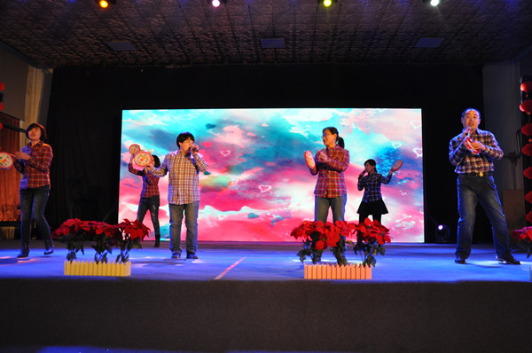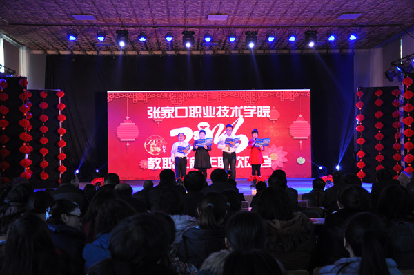 一段旋律動(dòng)聽、活力十足的《歡樂中國年》開場舞拉開了聯(lián)歡會(huì)的序幕,絢麗的燈光下,舞動(dòng)著一張張朝氣蓬勃的笑臉。大合唱《歌唱祖國》道出了張職院人對(duì)母校與祖國同呼吸、共命運(yùn)的衷心祝福;一篇飽含深情的朗誦《我們一起走來》聲情并茂,飽含深情;舞蹈《39度發(fā)燒》將原有內(nèi)容重新編排,獨(dú)具匠心的演繹帶來耳目一新的感受;楊靜老師演唱的《星語星愿》一吐情絲;秦佳卉老師演唱的《我是一只小小鳥》音調(diào)高昂跳躍;苑力軍老師演唱的《斑馬斑馬》讓人動(dòng)情,博得了場上陣陣掌聲;節(jié)目 “三句半”的詼諧調(diào)侃,幽默的語言引得全場觀眾捧腹;合唱《回娘家》、《青春舞曲》演繹了不同風(fēng)格、曲調(diào)優(yōu)美的民間、民族歌曲;靈動(dòng)?jì)故斓乃π湮瑁垒喢缞J的《扇子舞》以及動(dòng)感十足的《爵士舞》等節(jié)目精彩紛呈、高潮迭起。聯(lián)歡會(huì)中還穿插了“猜謎語”、“大比拼”、“默契度考驗(yàn)”等游戲及幸運(yùn)大抽獎(jiǎng)環(huán)節(jié),使現(xiàn)場的氣氛更加熱烈、火爆。形式多樣的節(jié)目,精彩不斷,為在場的觀眾獻(xiàn)上了一場美好的視聽盛宴。