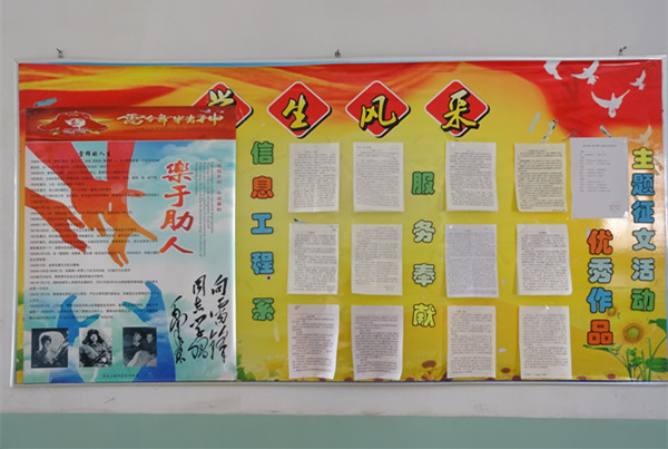 各類志愿服務活動是本次主題活動月的一大亮點。土木工程系組織200多名青年志愿者參與到清掃圖書館、清除校園廣告、撿拾垃圾的行動中,為創(chuàng)造美麗潔凈校園而貢獻力量;信息工程系結合專業(yè)特長,為我院師生、社區(qū)居民提供電腦義務維修活動,接待咨詢人員100多人次,服務了30多位師生、居民,鍛煉了同學們的實踐能力與專業(yè)技能。全院上下形成了濃厚的學雷鋒氛圍,將雷鋒精神真正落到實處。