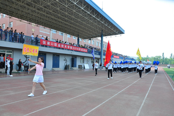 院長王立秋致開幕詞,黨委書記胡煒宣布“張家口職業(yè)技術(shù)學(xué)院2016年春季田徑運動會開幕”。裁判員代表陳躍龍宣誓,經(jīng)濟管理系學(xué)生史偉代表全體運動員宣誓。