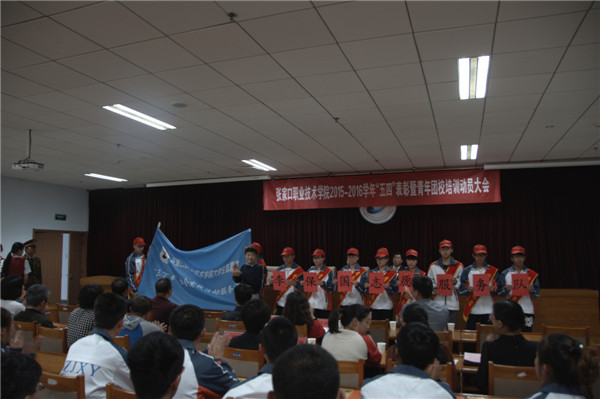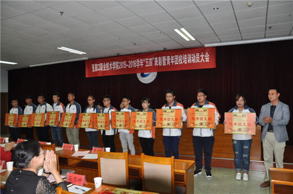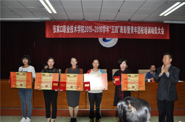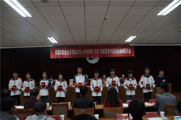 大會(huì)在雄壯的國歌聲中拉開帷幕,學(xué)工處副處長安姍姍宣讀了《共青團(tuán)張家口職業(yè)技術(shù)學(xué)院委員會(huì)關(guān)于表彰2015-2016學(xué)年度先進(jìn)集體和先進(jìn)個(gè)人的決定》。信息工程系和土木工程系2個(gè)團(tuán)總支榮獲“學(xué)生活動(dòng)工作突出優(yōu)秀團(tuán)總支”榮譽(yù)稱號(hào);汽車工程系、經(jīng)濟(jì)管理系和機(jī)械工程系3個(gè)團(tuán)總支榮獲“學(xué)生活動(dòng)特色鮮明優(yōu)秀團(tuán)總支”榮譽(yù)稱號(hào);汽車工程系、經(jīng)濟(jì)管理系、信息工程系、土木工程系、機(jī)械工程系、電氣工程系6個(gè)團(tuán)總支榮獲“春季學(xué)雷鋒活動(dòng)先進(jìn)團(tuán)總支”榮譽(yù)稱號(hào)。馬燕坤、金銘鈺、張欣然、胡雅娜、宗園園5名團(tuán)總支書記榮獲“優(yōu)秀團(tuán)務(wù)工作者”榮譽(yù)稱號(hào)。15級(jí)移動(dòng)通信技術(shù)班等12個(gè)團(tuán)支部榮獲“優(yōu)秀團(tuán)支部”榮譽(yù)稱號(hào);青年志愿者協(xié)會(huì)等5個(gè)社團(tuán)榮獲“優(yōu)秀社團(tuán)”榮譽(yù)稱號(hào);辛佳利等9名同學(xué)榮獲“校級(jí)優(yōu)秀團(tuán)務(wù)工作者”榮譽(yù)稱號(hào);吳孟忱等87名同學(xué)榮獲“優(yōu)秀團(tuán)學(xué)干部”榮譽(yù)稱號(hào);張紫薇等187名同學(xué)榮獲“優(yōu)秀共青團(tuán)員”榮譽(yù)稱號(hào);石曉海等33名同學(xué)榮獲“優(yōu)秀青年志愿者”榮譽(yù)稱號(hào)。