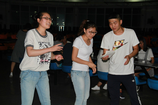 活動中,同學們圍坐在一起,親自動手,和餡兒的,包餃子的,在一旁指點的,忙得不亦樂乎。當一盤盤熱氣騰騰的餃子擺到大家面前時,大家高興地品嘗自己的勞動果實,暖融融的溫情,滿堂的歡聲笑語,令大家熱情高漲。隨后,大家一同玩起小游戲,“拍七令”,大家快速數(shù)數(shù),靈活應變,出錯者則接受懲罰,場面爆笑連連;“心有靈犀”猜詞中,兩人配合猜與節(jié)日相關的詞匯,大家使出渾身解數(shù),手腳并用,令人捧腹。趣味無窮的游戲帶來了陣陣歡聲笑語,掀起了一個個活動高潮,現(xiàn)場成了友誼與歡樂的海洋。