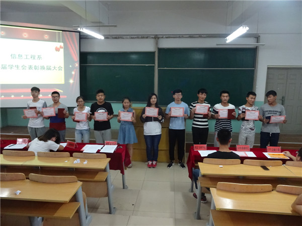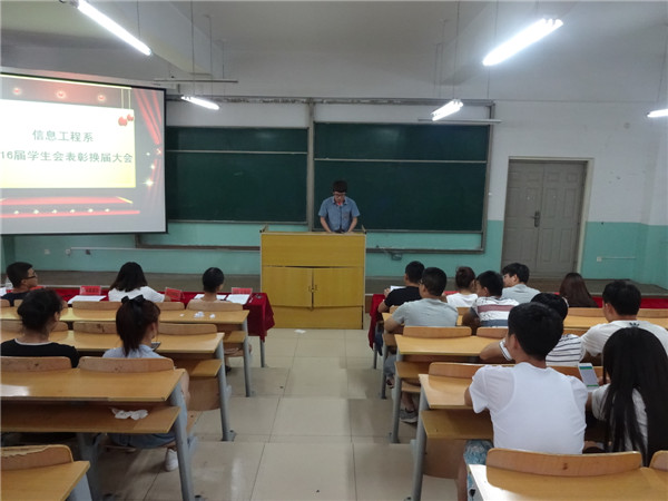7月2日,信息工程系團總支學生會換屆暨表彰大會在博學樓310舉行。大會由系學生會文體部部長王毅主持,學生會全體成員參加。