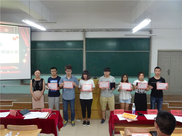 首先,上一屆學生會主席團代表劉波同學向在場師生總結過去一年的工作情況,分享了他在學生會工作一年來的經歷和收獲,并表達了對系學生會未來美好的希望和祝愿。表彰過程中,文體部、宣傳部被評為優秀部門;吳孟忱等8名同學被評為優秀干部;馬強等12名同學被評為優秀干事。系團總支書記馬燕坤老師為獲獎同學頒發榮譽證書,并對即將卸任和曾經為系部學生會工作做出貢獻的學生干部表示感謝,對新一屆學生會成員提出了要求與期望:準確定位,明確職責;嚴于律己,全新全意為同學服務;正確處理學習和工作的關系。