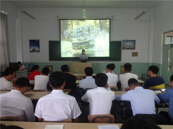 9月7日下午,汽車工程系在汽修樓8教室舉行了學生會換屆選舉大會。系書記郭云飛、團總支書記張欣然以及大三學生會的同學們參加會議。