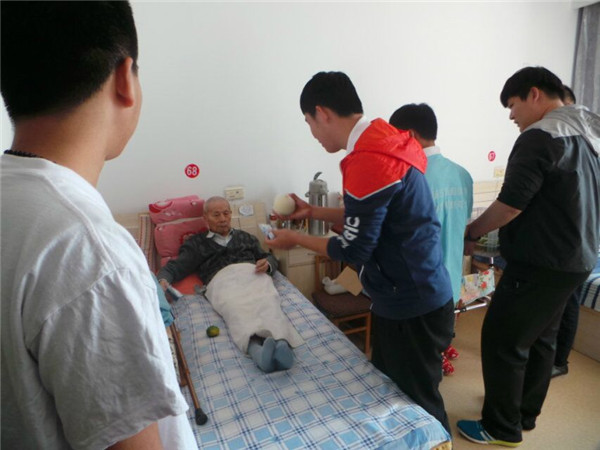 志愿者們帶著愛心捐款購(gòu)買的慰問品并滿懷熱情來(lái)到敬老院,在敬老院負(fù)責(zé)人帶領(lǐng)下看望每一位老人,為老人們送去真情的溫暖和關(guān)愛,給老人們帶去了誠(chéng)摯的祝福,并送上了自己精心準(zhǔn)備的小節(jié)目,使得老人們笑容滿面。