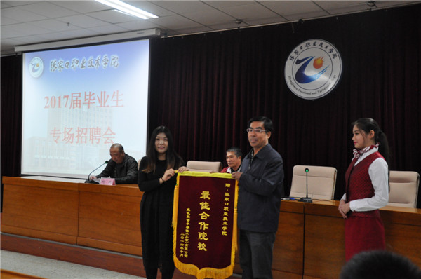 首先,學(xué)院在307報(bào)告廳舉行了啟動(dòng)儀式,學(xué)院領(lǐng)導(dǎo)王立秋院長(zhǎng)、陳懷勇副院長(zhǎng)參加了啟動(dòng)儀式,招生就業(yè)處劉斌處長(zhǎng)主持。威訊聯(lián)合半導(dǎo)體(北京)有限公司安經(jīng)理代表合作企業(yè)向王院長(zhǎng)贈(zèng)送了錦旗。隨后,劉處長(zhǎng)宣讀了《2017屆畢業(yè)生校園專場(chǎng)招聘會(huì)安排》。