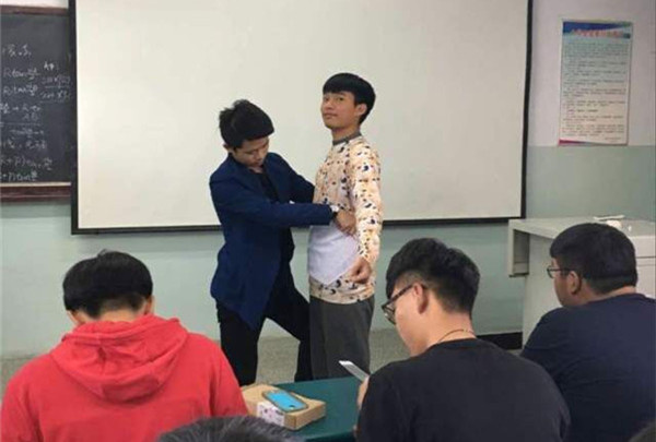 培訓分為理論生命健康安全教育培訓和救護實踐操作兩個部分,做到了真正的“知行合一”。輔導員左巖巖老師為學生們講解了心肺復蘇、創傷救護、排除氣道異物等基本技能,并進行了實踐操作方面的培訓,同學們互相做創傷救護,止血包扎練習,模擬人心臟復蘇操作。大家熱情高漲,邊聽邊記,表現出了極大的興趣。