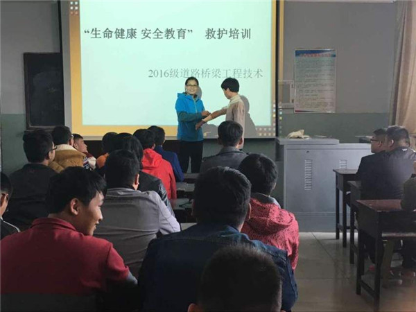 10月14日下午,土木工程系16級道路橋梁工程技術班開展了“生命健康安全教育”急救知識培訓活動。旨在為繼承和發揚“人道、博愛、奉獻”紅十字會理念,加強校園安全教育,普及應急救護知識,增強學生的自救互救意識與能力。